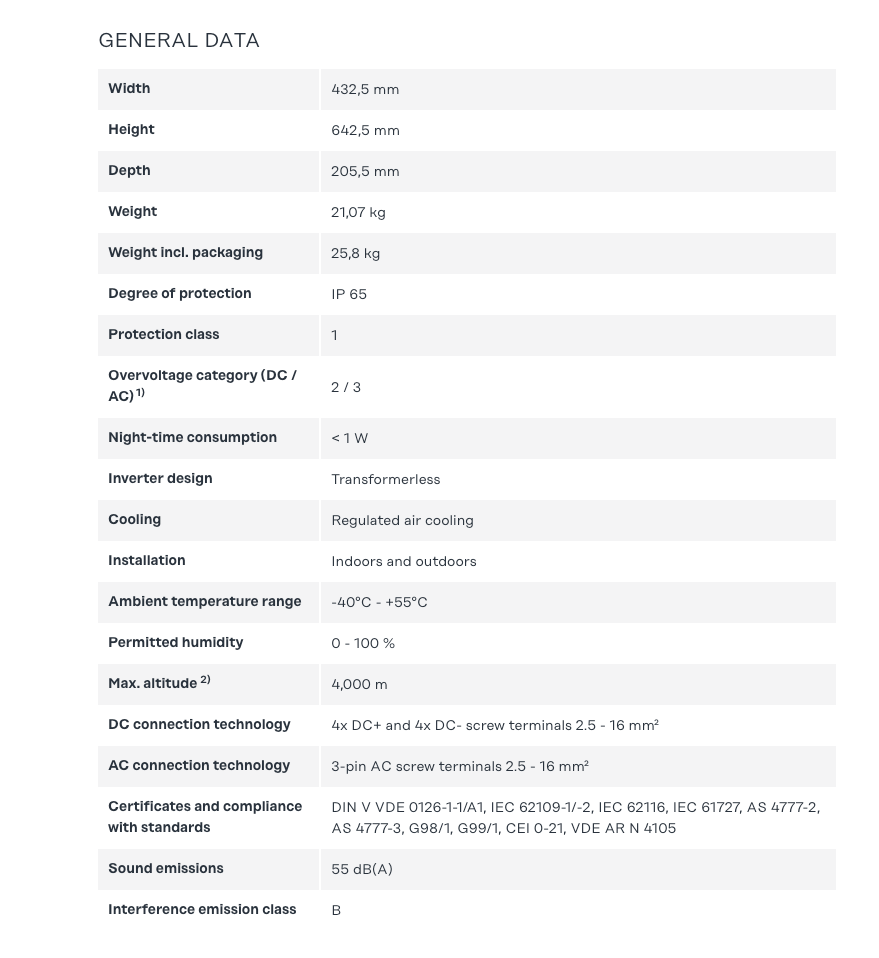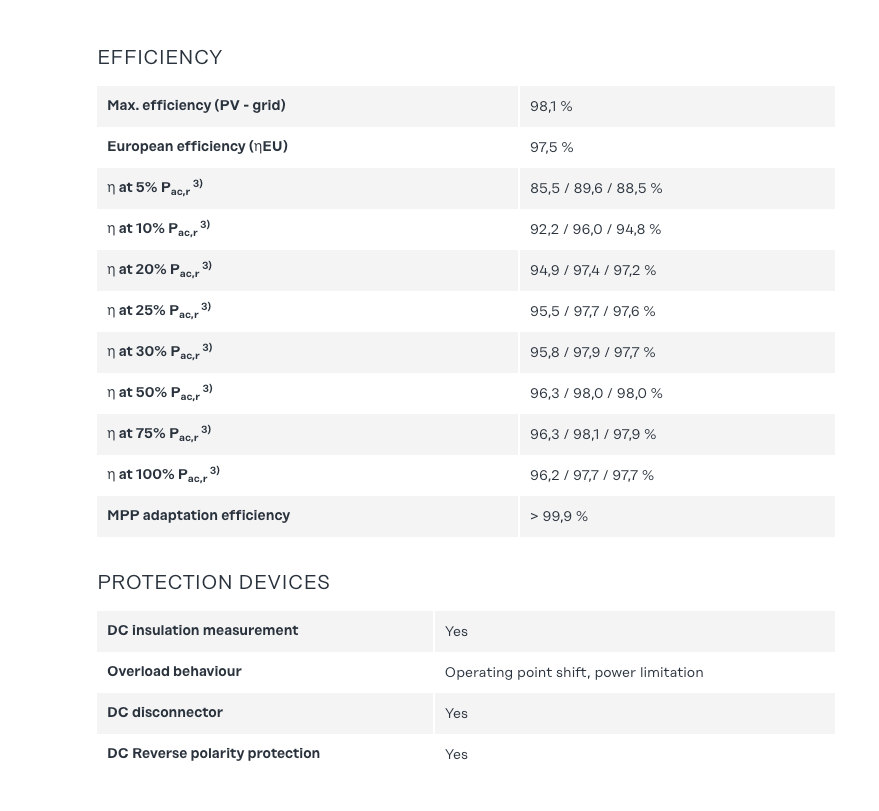 The Fronius Primo 8.2-1 Inverter boasts two MPP trackers, ensuring optimal energy harvest even in challenging conditions. Its wide input voltage range of 80-1000V provides flexibility for various system configurations, while the high maximum efficiency of 98.1% guarantees excellent performance.