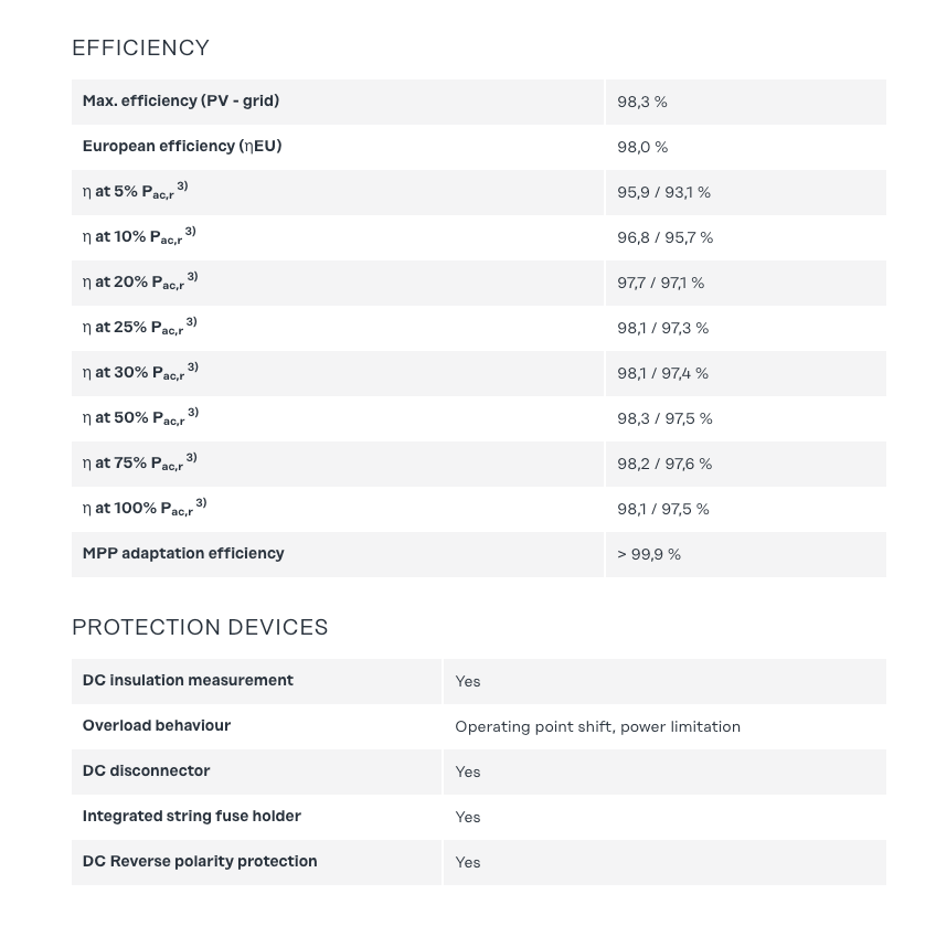 • High efficiency with 98.3% maximum efficiency (PV to grid)