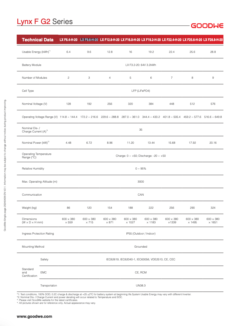 GoodWe Lynx F G2 Series 12.8kWh Battery | Data Sheet
